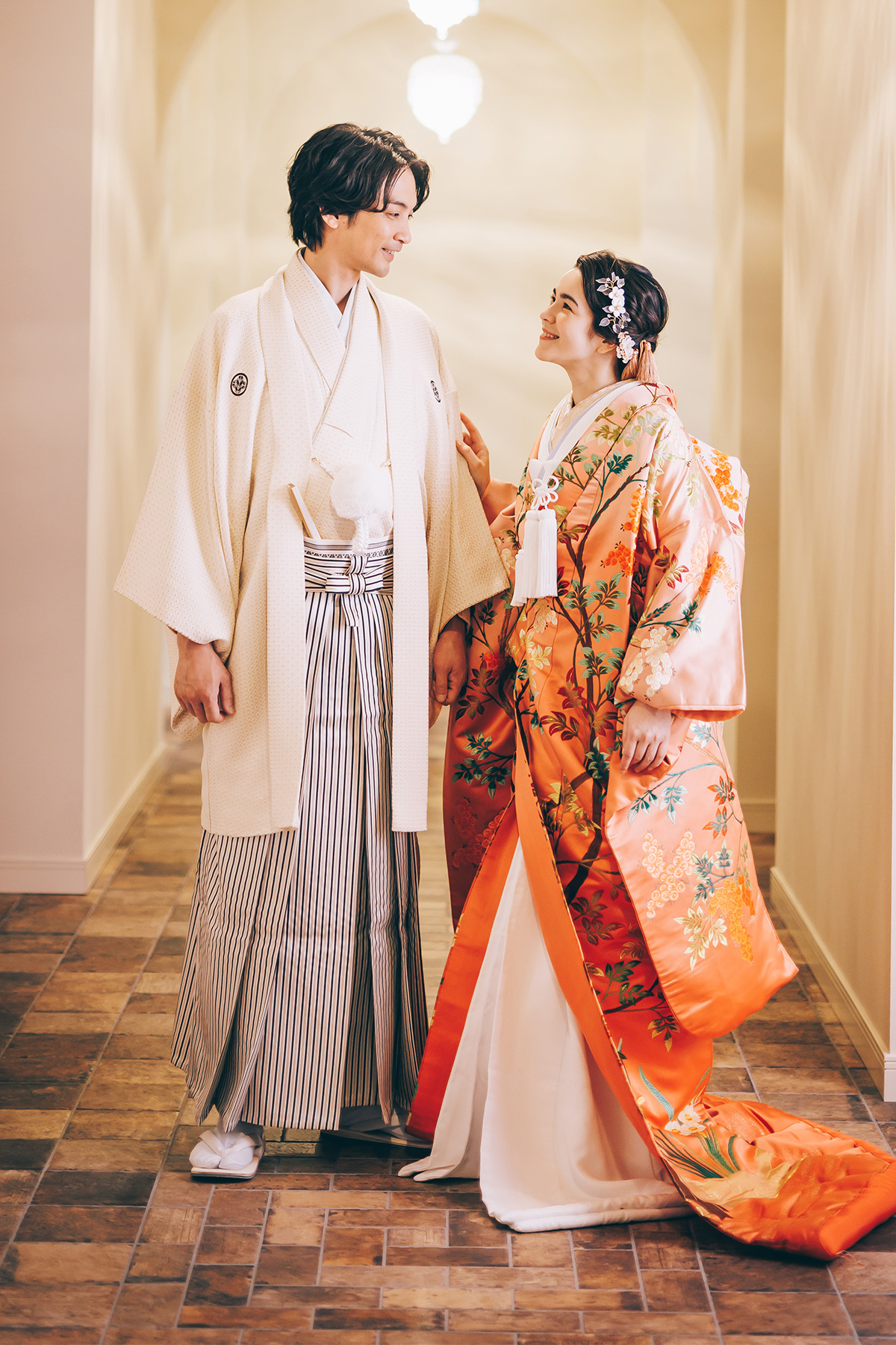 おふたりのヘアメイクと着付けが完成したら、撮影場所へ移動します。四季を感じる素晴らしい自然や、伝統的な建築の中でお二人のウェディングフォトを撮影いたします。