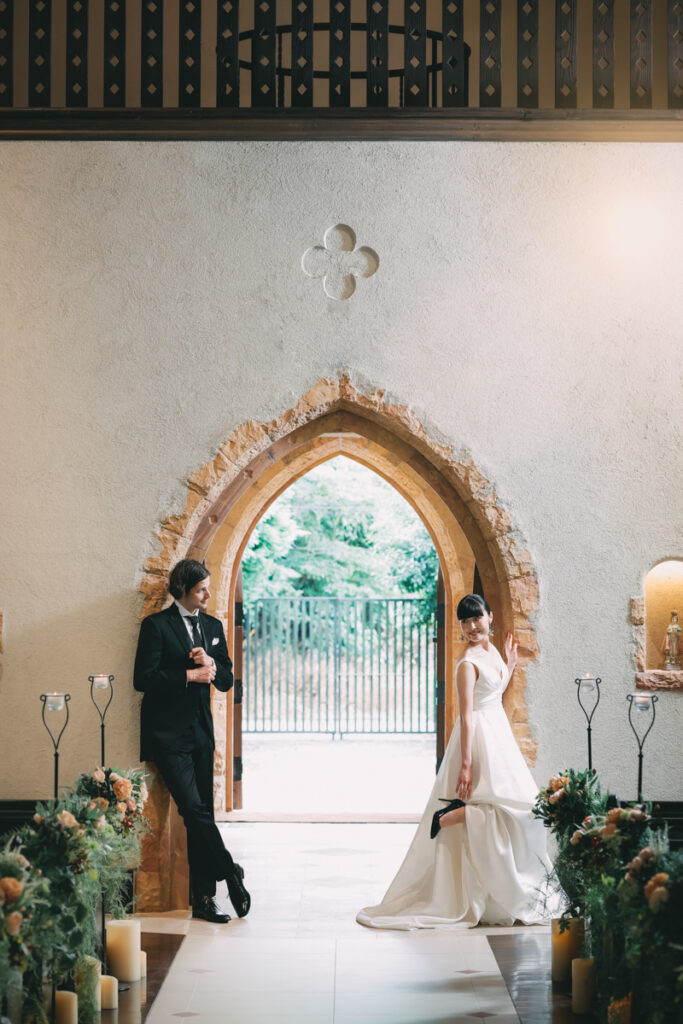 森の教会の壮大なチャペルをスタジオに、おふたりだけの特別なフォトウエディングを叶えます♪
