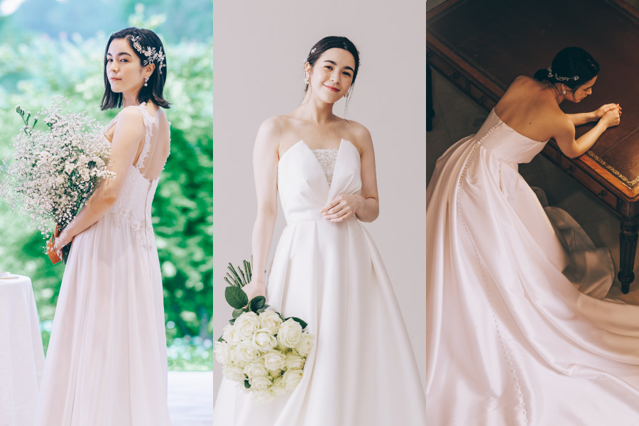 阿蘇の森を貸し切る特別な結婚式を彩るラグジュアリーな衣装ラインナップ。 衣装試着は熊本市内のサロンでできるから便利。