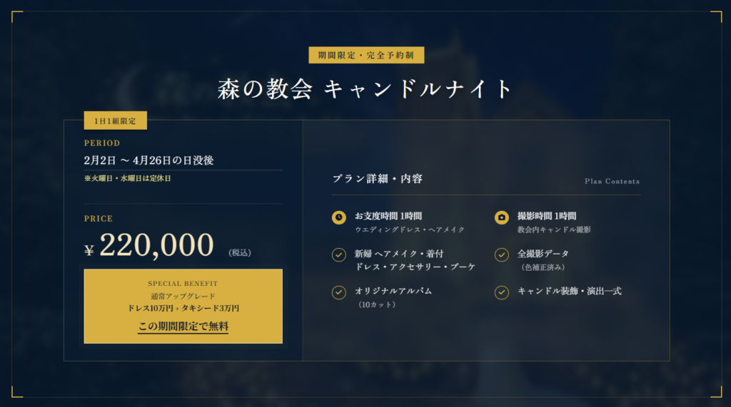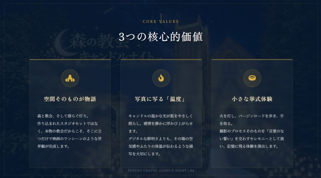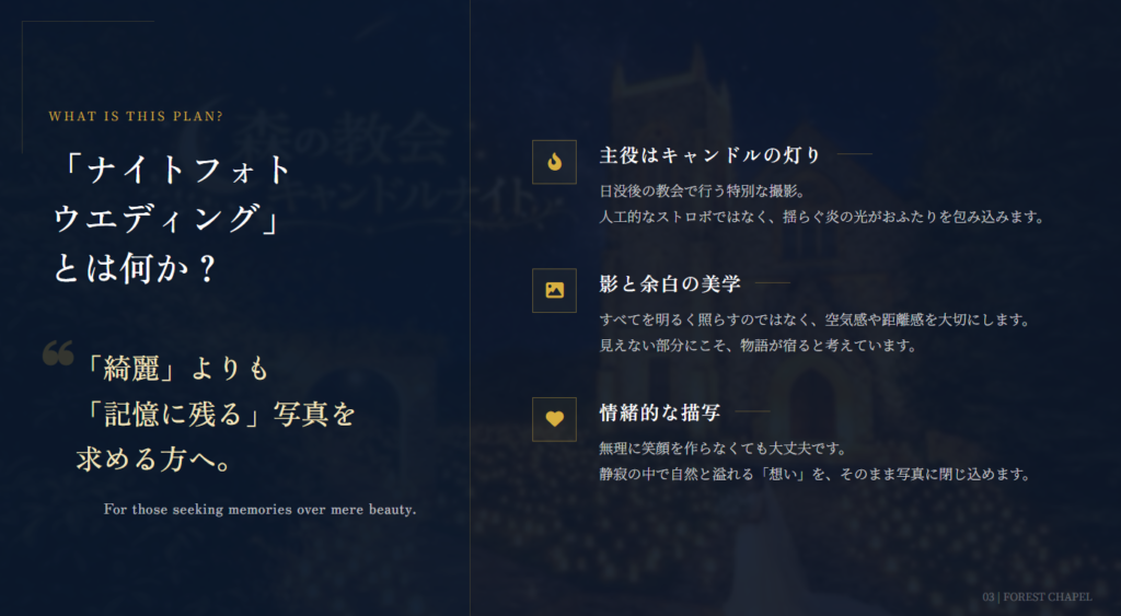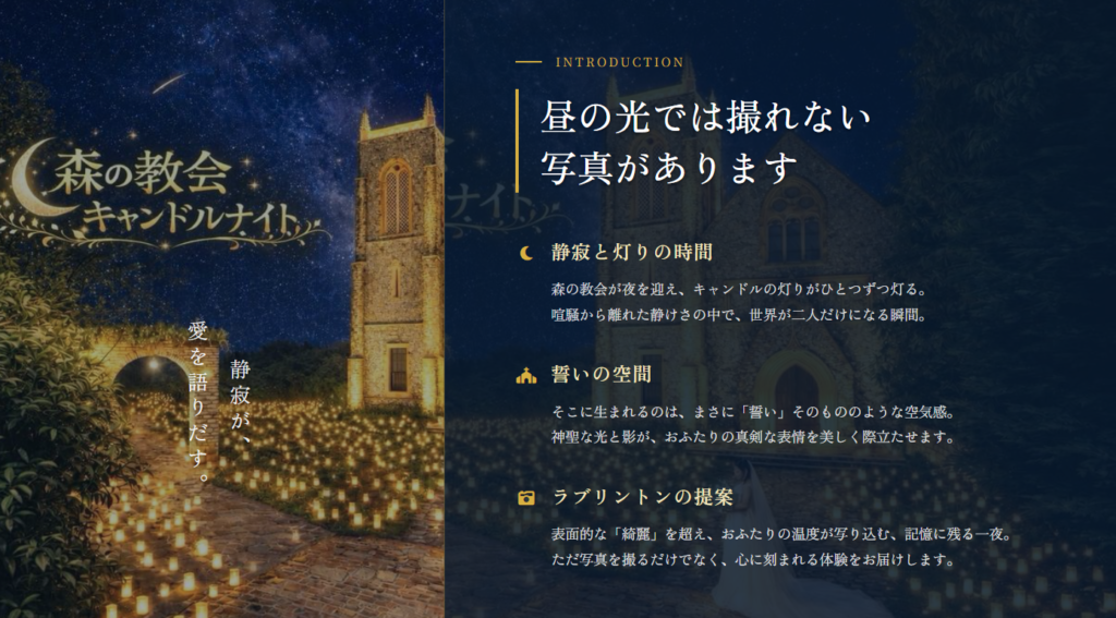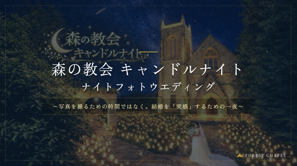 静寂の中で生まれる、ふたりだけのキャンドルナイトフォト 森の教会